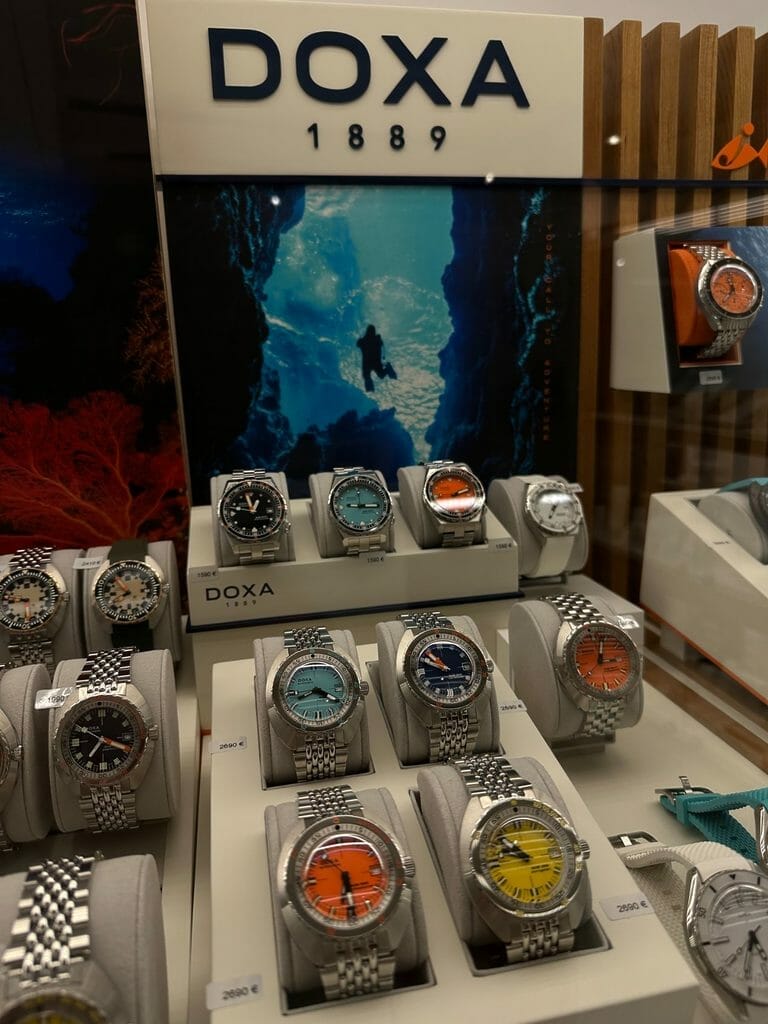 Nous avons déjà présenté Doxa dans nos pages. Nous suivons son actualité, ses lancements de produits, et son développement commercial. De nombreux lecteurs nous ont souvent sollicité afin de savoir où passer une de ces montres au poignet avant de l’acquérir. Et il n’était pas rare de profiter des rencontres horlogères que nous organisons pour présenter quelques modèles de la marque à des collectionneurs.