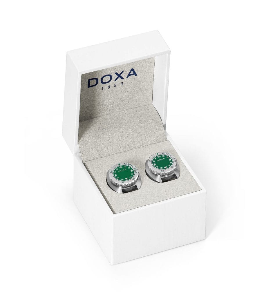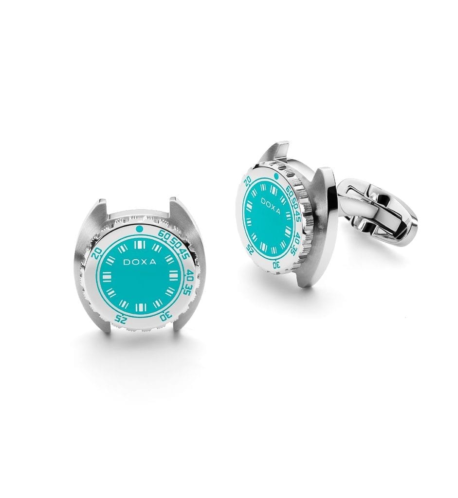 Cette collection d’accessoires symbolise l’évolution subtile de la marque, combinant performance et élégance. Les boutons de manchette DOXA, accessoires à la fois discrets et modernes, s’inspirent des codes emblématiques de la collection SUB. Leur design capture l’esprit d’aventure tout en apportant une touche d’élégance à toutes les tenues, qu’elles soient urbaines ou décontractées. On reconnaît instantanément la forme caractéristique du boîtier SUB, sa fameuse lunette avec ses paliers de décompression, ainsi que les index miniaturisés arborant le logo DOXA en leur centre.
