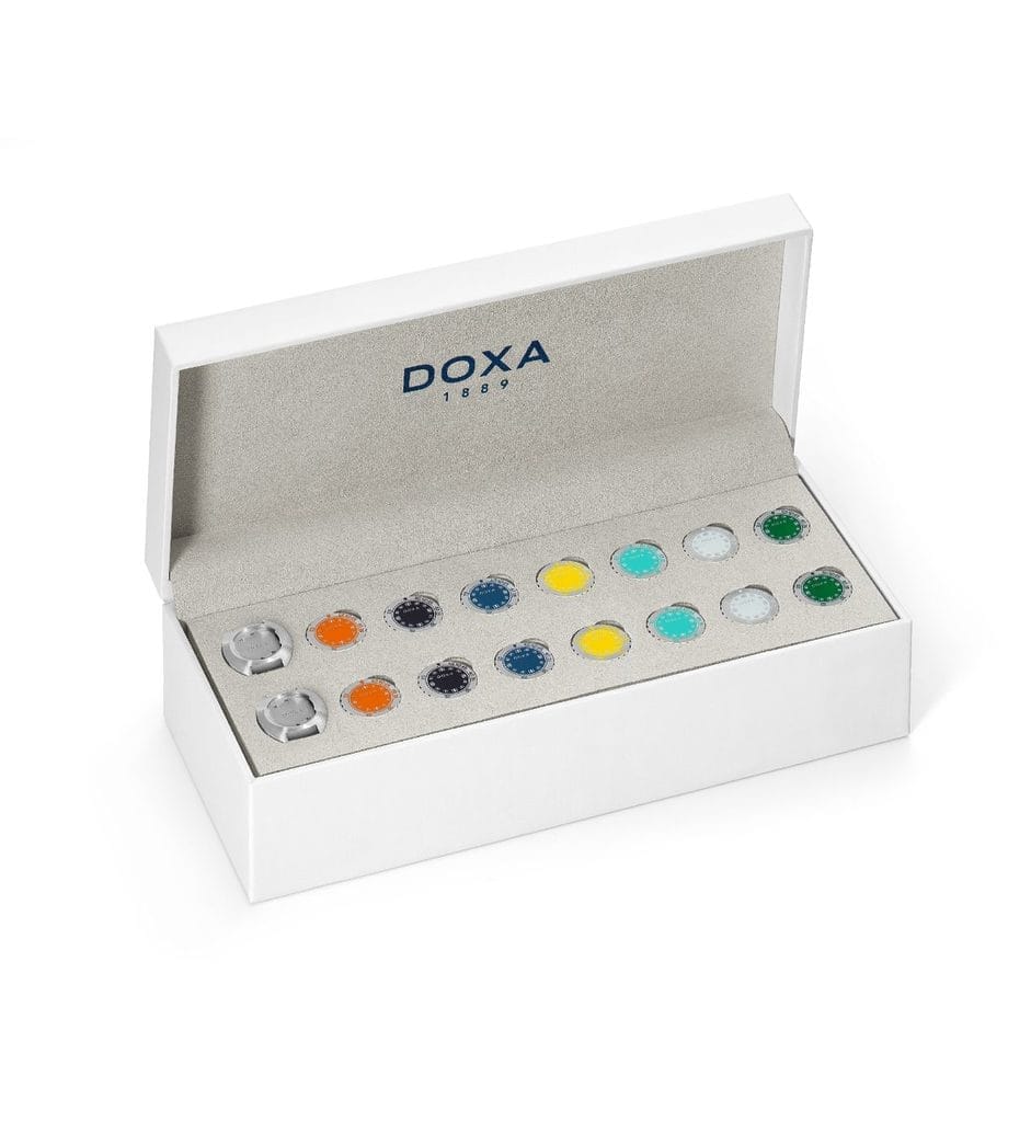 Les boutons de manchette sont proposés soit sous forme de set complet regroupant les sept couleurs dans un coffret spécialement conçu, soit en paires individuelles de chaque couleur. Cet accessoire est un hommage subtil à l’esprit d’exploration qui anime DOXA depuis ses débuts. Répondant à la demande croissante des clients, cette première ligne d’accessoires est un clin d’œil à l’aventurier moderne en quête de sophistication.