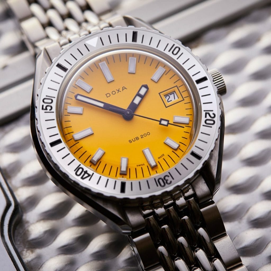 Proposée dès son lancement dans les huit teintes emblématiques de DOXA, sur bracelet en caoutchouc, en acier inoxydable de type « grains de riz », ou en NATO pour la version Sea Emerald, cette nouvelle SUB 200 perpétue l’esprit du modèle d’origine. Elle combine un design indémodable, une grande fonctionnalité, une fiabilité reconnue et une élégance sobre à un tarif accessible. Avec 16 nouvelles références ajoutées à la collection permanente, cette édition rejoint une lignée prestigieuse de plus d’un demi-siècle d’innovation horlogère.