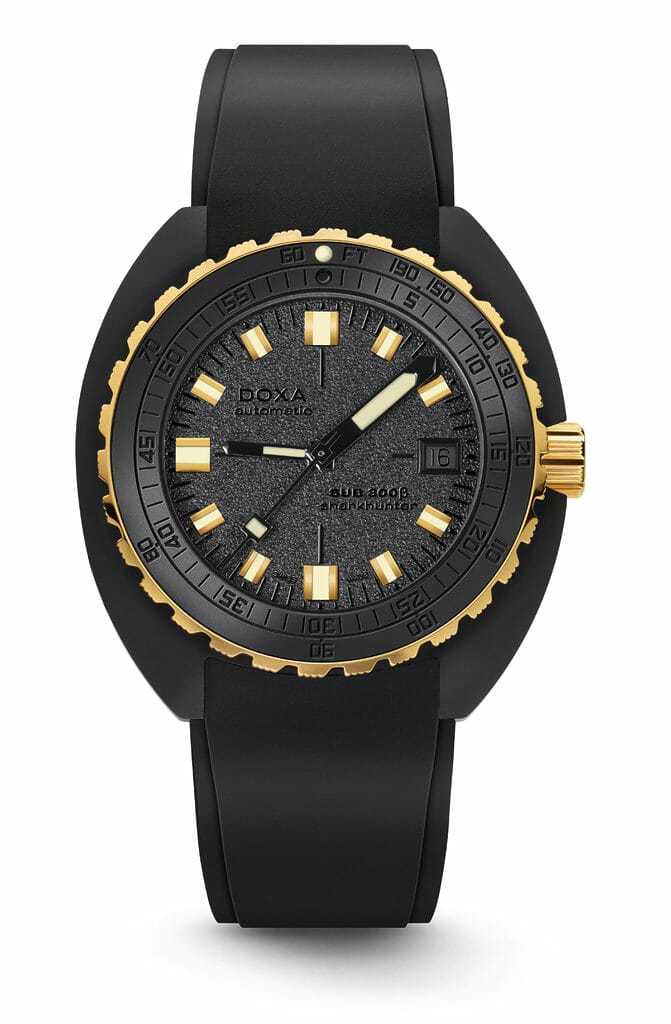 Après l’orange iconique de la SUB 300 d’origine, les couleurs vives qui retracent l’évolution du concept, la version camouflage qui fait écho à la connexion de la marque à l’armée suisse, et le look patiné vintage de l’édition spéciale SUB 300T Clive Cussler qui vient d’être lancée, voici la SUB 300β Sharkhunter – dans un noir et or époustouflant. Une autre première DOXA.