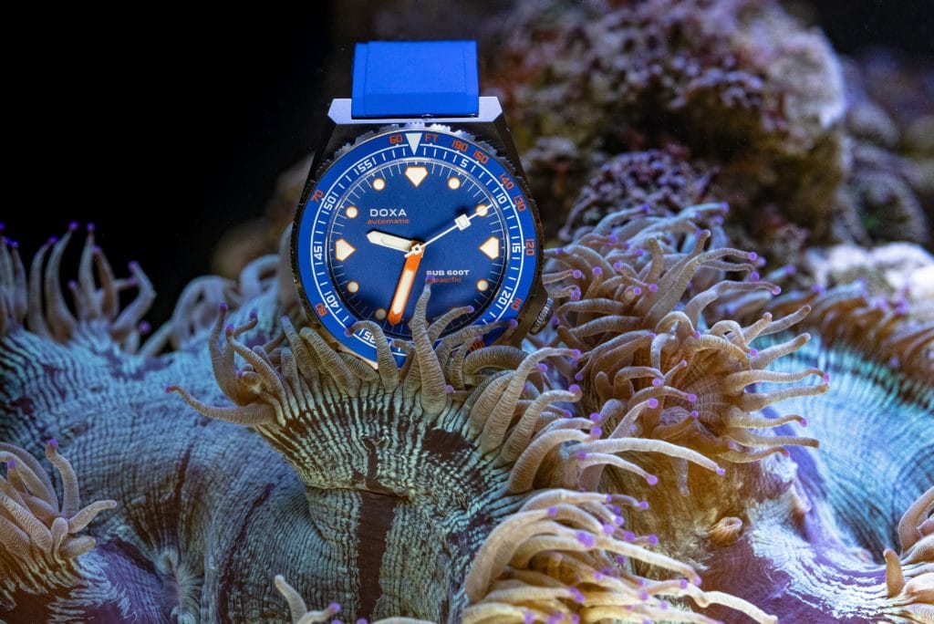 DOXA a été fondée en 1889 par Georges Ducommun. À la fin des années 1960, DOXA se concentre sur les montres de plongée et lance le concept révolutionnaire SUB considéré comme la première montre de plongée professionnelle véritablement ‘grand public’. Grâce à ses innovations, les montres de plongée sont rapidement adoptées par les plongeurs amateurs mais également par les plongeurs militaires. Est-il nécessaire de rappeler que le Commandant Jacques-Yves Cousteau, co-inventeur du scaphandre autonome et père spirituel de la plongée sous-marine moderne, appréciait beaucoup les montres DOXA. On voit régulièrement des SUB sur les poignets des plongeurs qui sautent de la Calypso pour emmener des millions de téléspectateurs sur les missions légendaires de « L’Odyssée sous-marine de l’équipe Cousteau ».