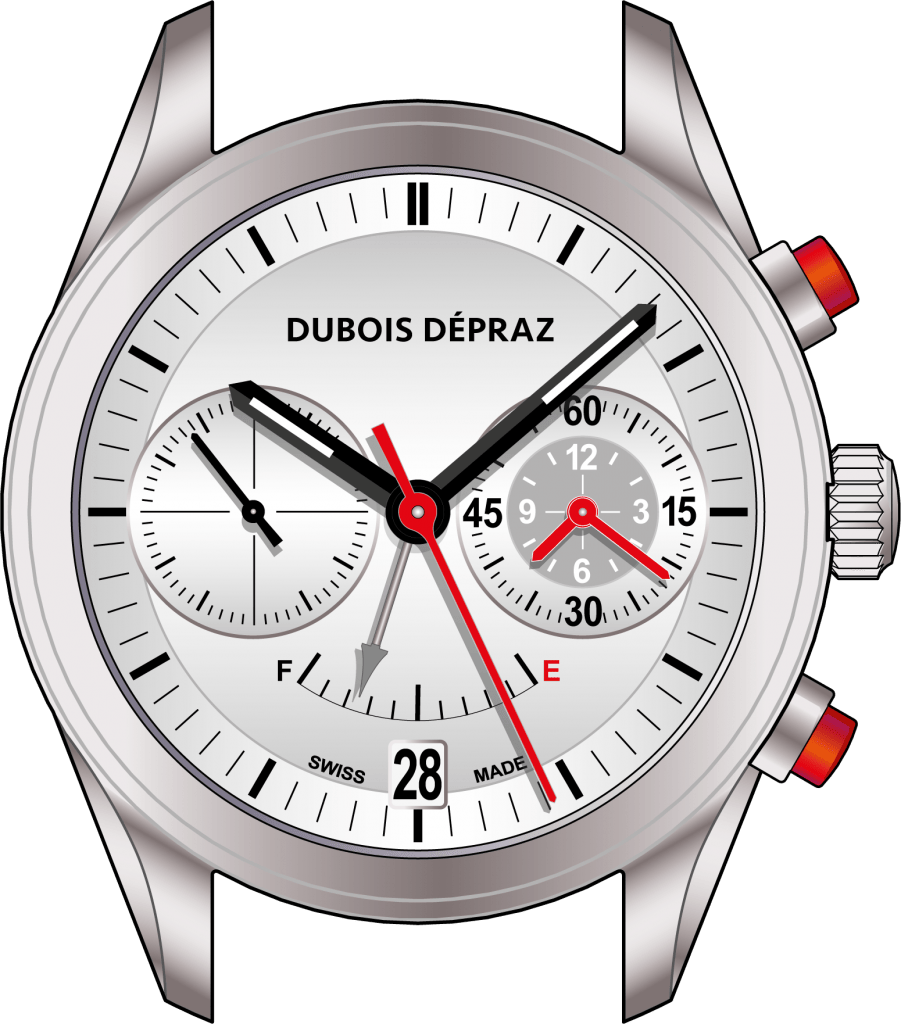 Parti d’une feuille blanche, Dubois Dépraz a choisi de donner à ce chronographe une forte personnalité. Doté d’une réserve de marche de 3 jours, ce magnifique mouvement manufacture à roue à colonnes indique le temps chronométré à l’aide d’une aiguille de secondes au centre et de 2 aiguilles concentriques (heures/minutes) sur un seul et même compteur. Une belle maîtrise technique.