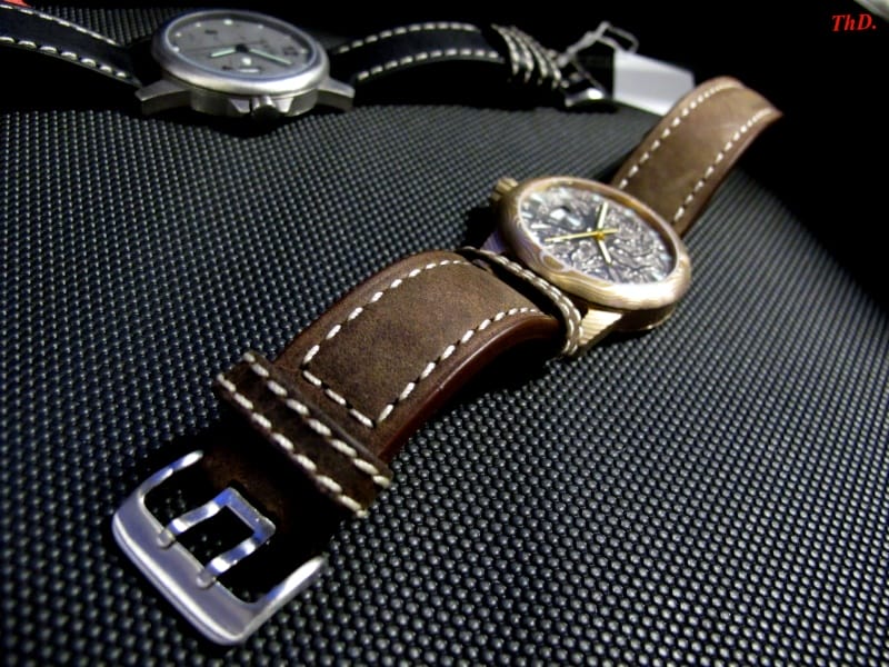 La boîte (d’un diamètre de 45 mm, épaisse de 13 mm pour une longueur de corne à corne de 55 mm), contient un mécanisme 2824, assemblage et emboîtage suisses effectués par Its Time, Pierre Supper s’étant aussi rapproché de Paul Wsis, horloger.
