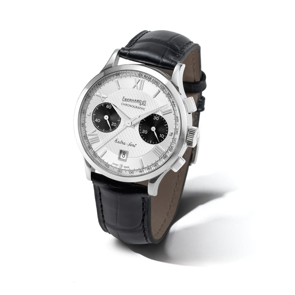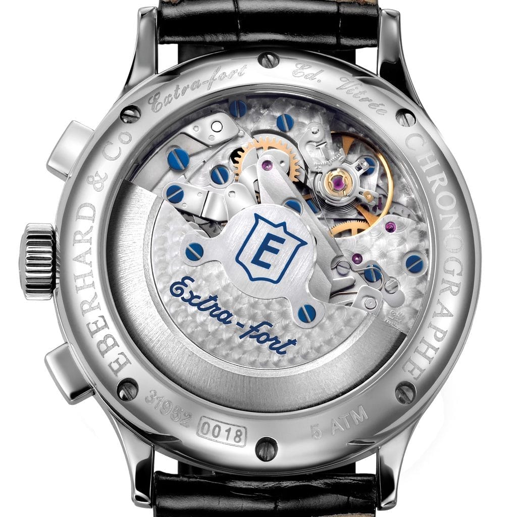 Depuis 1940, année de présentation du premier modèle, le chronographe Extra-fort a connu une fortune particulière : il a été interprété par la Maison dans de nombreuses versions au fil des ans et figure parmi les modèles les plus appréciés et anciens d’Eberhard & Co.
