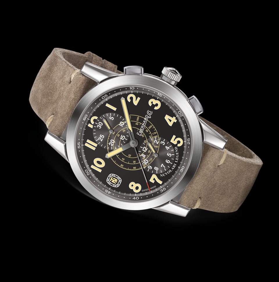 L’histoire d’Eberhard est caractérisée par des valeurs et des créations qui, depuis 1887, l’année de sa création à La Chaux-de-Fonds, ont construit l’ADN de la marque, dont le nom est devenu synonyme de tradition, de recherche constante et d’innovation. Avec plus de 130 années de passion, d’histoire ininterrompue et de montres intemporelles, Eberhard & Co. s’est toujours référée à ces valeurs pour la création de ses modèles, en constante évolution et en même temps, capables d’hériter la richesse d’une histoire célèbre. La collection « Tazio Nuvolari », centrée sur les chronographes sportifs, s’est enrichie au fil du temps de nombreuses versions, dont certaines sont inspirées de grandes victoires ou d’exploits réalisés par le champion pour citer seulement certains des modèles les plus appréciés : Tazio Nuvolari « Vanderbilt Cup », « Grand Prix », « Gold Car Collection », « Rattrapante », « Data », « 336 », « Naked ». La collection est conçue et réalisée sur la base d’une philosophie conceptuelle qui se réfère à l’équipement des voitures de course de l’époque : le poste de conduite des voitures extraordinaires avec lesquelles le « Mantouan Volant » a remporté de nombreuses victoires, a été pour les techniciens d’Eberhard, une véritable source d’informations et de solutions, à la fois fonctionnelles et esthétiques.
