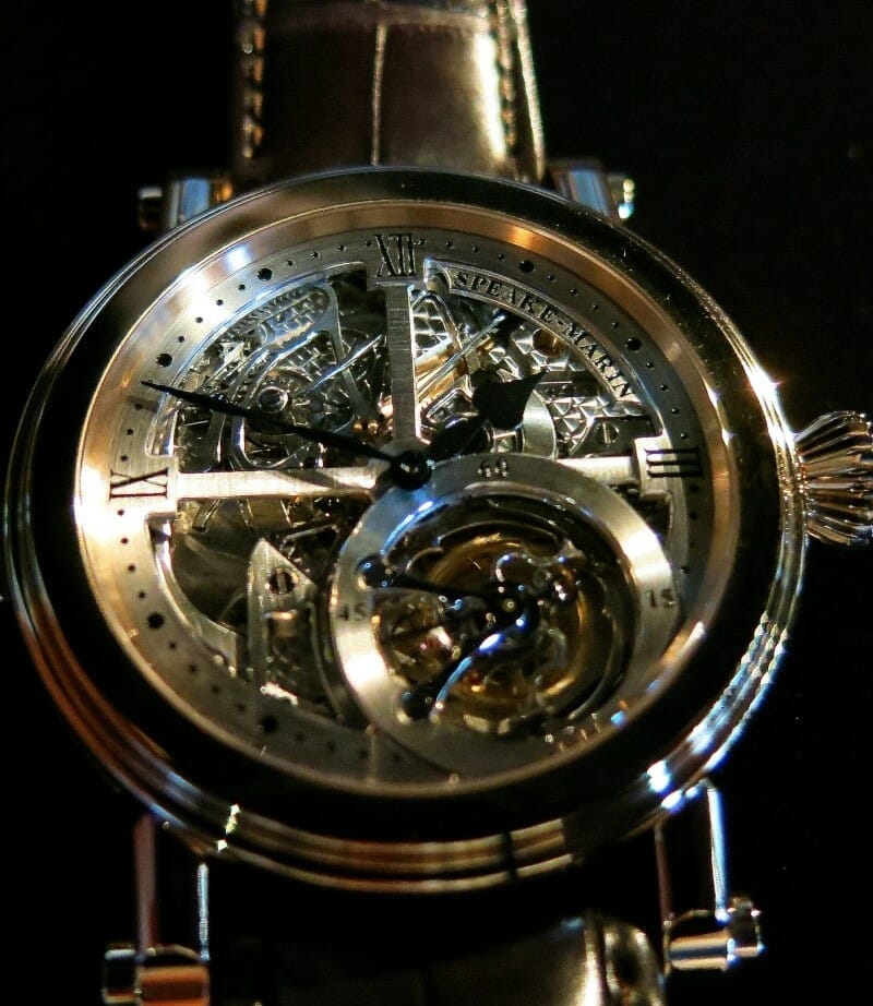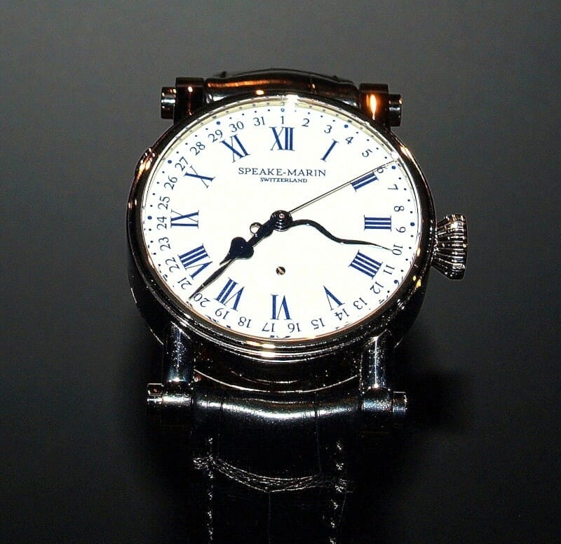 Mais c’est un autre modèle Speake-Marin qui nous avait séduit à Deauville, la Serpent Calendar en cadran émail blanc.