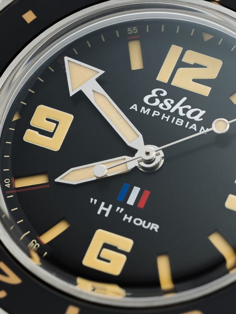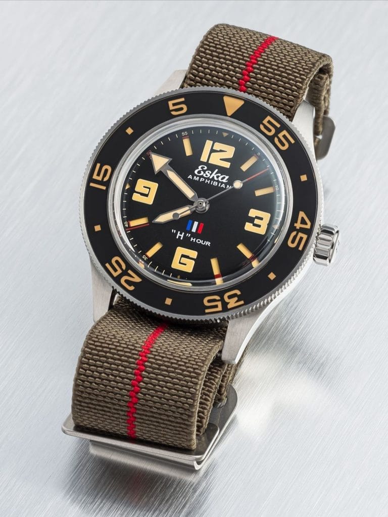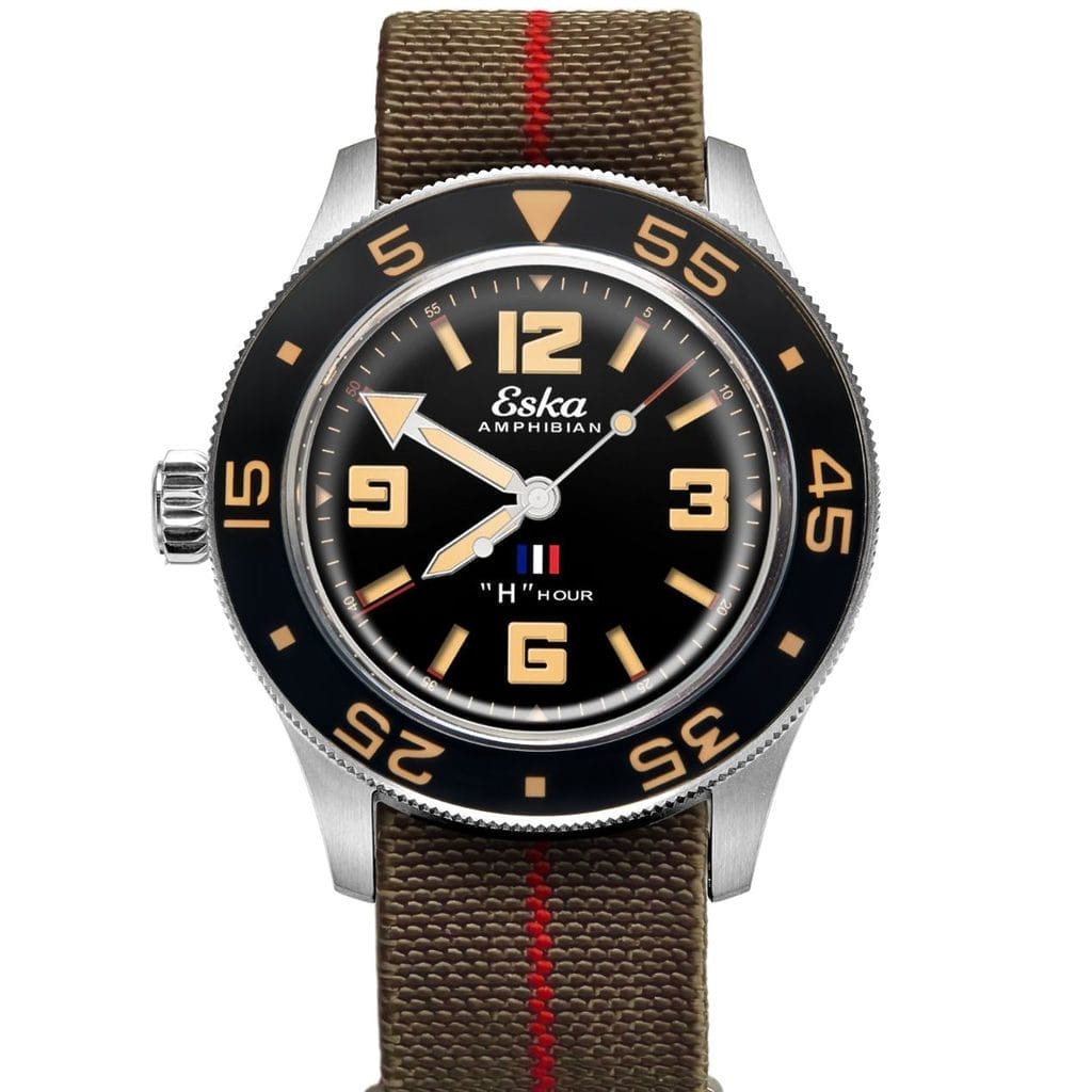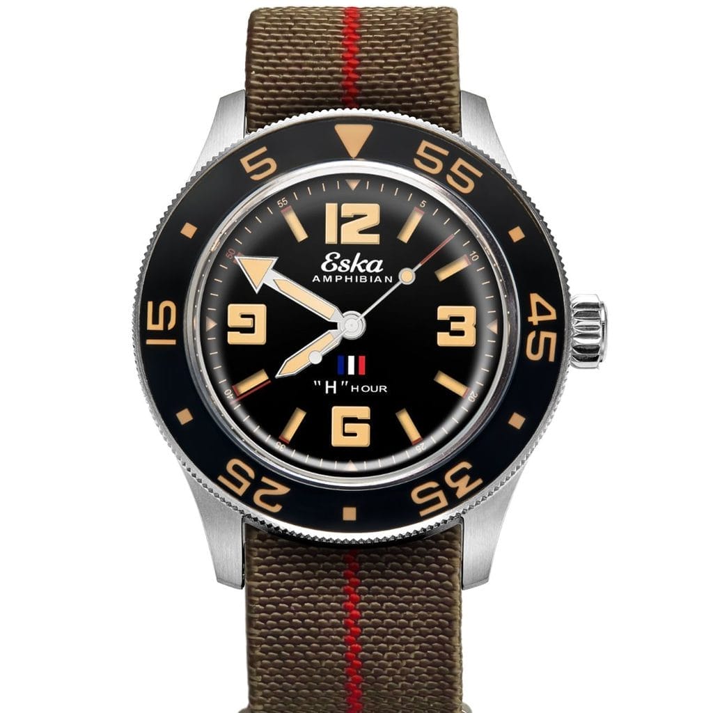 Certaines montres racontent une époque. D’autres racontent une mission. Plus rares encore sont celles qui portent en elles un instant précis de l’Histoire, gravé non seulement dans le métal, mais aussi dans la mémoire collective. Avec l’Amphibian 250 « H-Hour », Eska ne signe pas simplement une nouvelle déclinaison de sa montre de plongée. La marque suisse ressuscitée donne naissance à une véritable montre-mémoire, conçue comme un hommage aux forces amphibies françaises et à l’un des moments les plus décisifs de leur engagement.