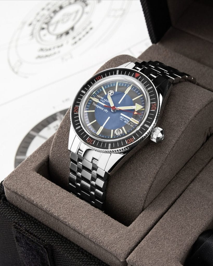 Cette approche correspond parfaitement à la philosophie de Javier Estremera, fondateur de Timepiece 787, pour qui la montre de plongée dépasse largement sa fonction utilitaire. « Pour nous, la plongeuse est bien plus qu’une catégorie horlogère, elle incarne un véritable style de vie. L’objectif était de créer une renaissance fidèle à l’esprit d’une icône Favre-Leuba des années 1960, une montre conçue avec caractère, robustesse et authenticité. »