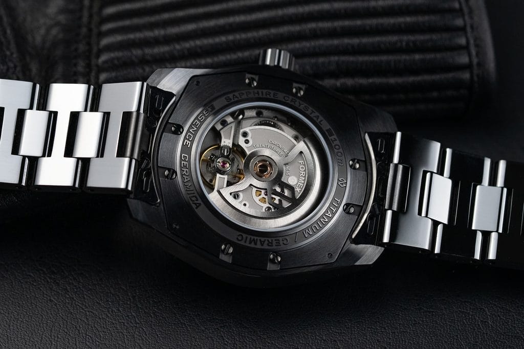 Formex pousse également l’innovation sur les détails pratiques : un système de suspension de boîtier repensé pour la céramique, une couronne vissée intégrée avec des tolérances extrêmes, une boucle déployante en céramique avec micro-ajustement breveté, et un système de bracelet interchangeable développé avec Dexel. Autant d’éléments qui renforcent la dimension quotidienne et polyvalente de la montre.