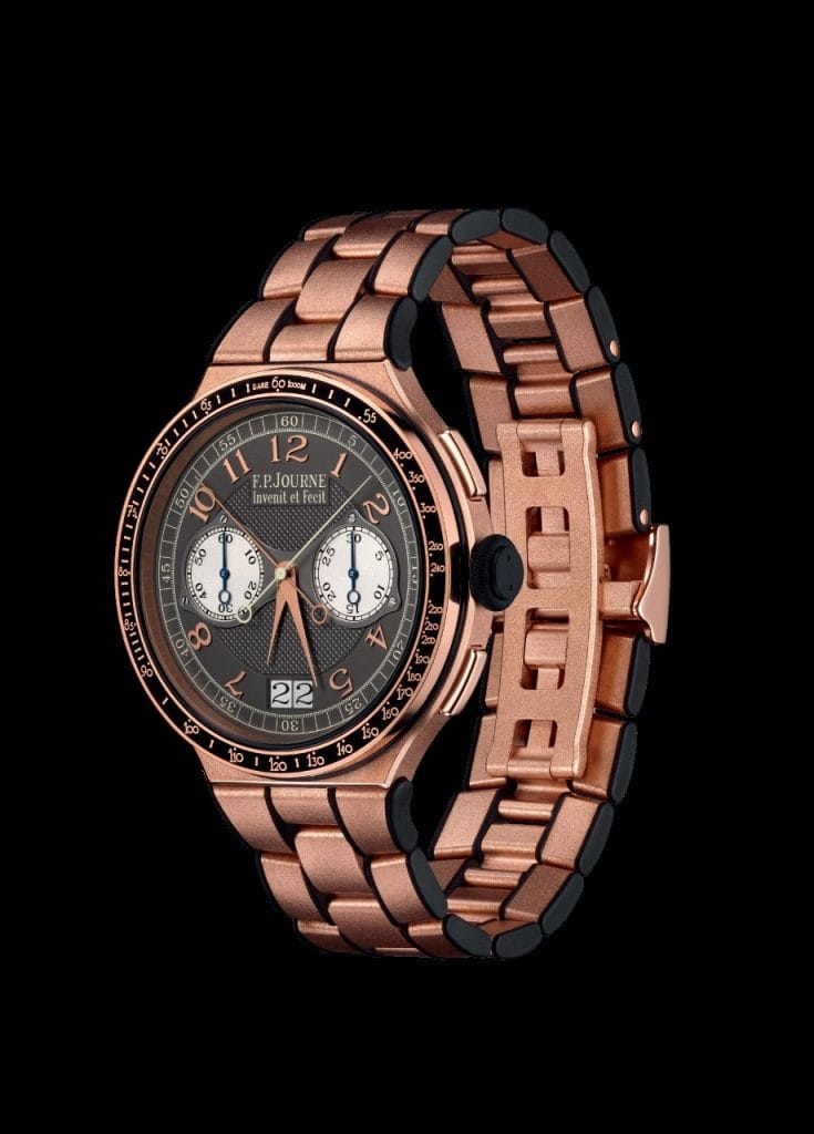 Issu du développement du Chronographe réalisé pour Only Watch, ce nouveau mouvement dispose d’un embrayage de chronographe avec un pignon basculant qui évite le saut de l’aiguille au départ. Il a nécessité un développement important pour l’intégration de la grande date dans une épaisseur totale de seulement 6.80 mm, signature de la marque F.P.Journe.
