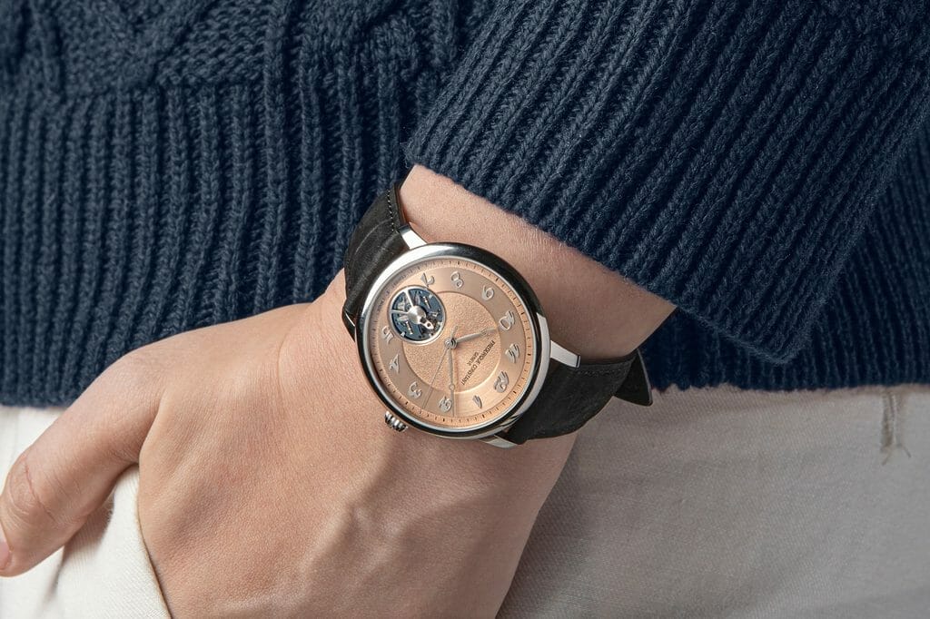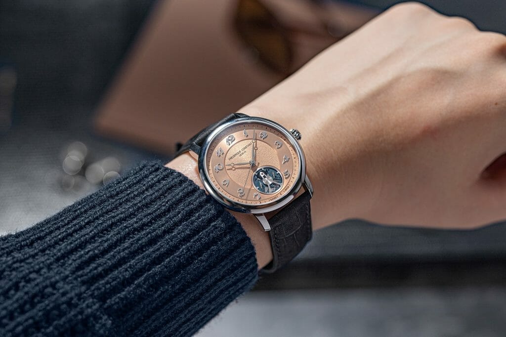 Développée en collaboration avec le célèbre site horloger Revolution, la Slimline Monolithic Manufacture, véritable percée technologique de Frédérique Constant, se pare désormais d’une palette de couleurs aux teintes rosées et de chiffres Breguet surdimensionnés dans cette édition limitée exclusive. Réalisée en 100 exemplaires, la Slimline Monolithic FP(S) ou Future Past (Salmon) Frédérique Constant × Revolution sera livrée avec deux bracelets, un bracelet en cuir de veau noir avec une boucle déployante, ainsi qu’un bracelet additionnel en cuir de veau gris. Cette édition limitée est disponible à l’achat depuis le 6 avril 2023 uniquement sur le site internet de Revolution : revolutionwatch.com.