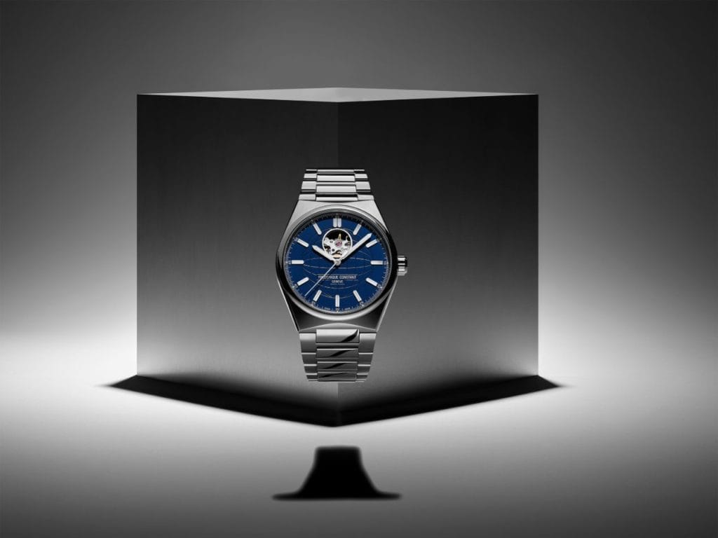 La Highlife Heart Beat reprend ce design iconique et le transpose au XXIe siècle. Trônant au pôle du globe terrestre décorant le cadran, la célèbre ouverture est survolée de trois aiguilles luminescentes. Le dessin est sobre, minimaliste, toujours aussi moderne et singulier. Le regard plonge directement au cœur des rouages du calibre automatique FC-310, garant de 38 heures de réserve de marche et que l’on peut admirer côté face et fond par un verre saphir.