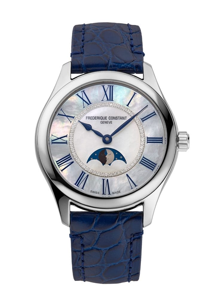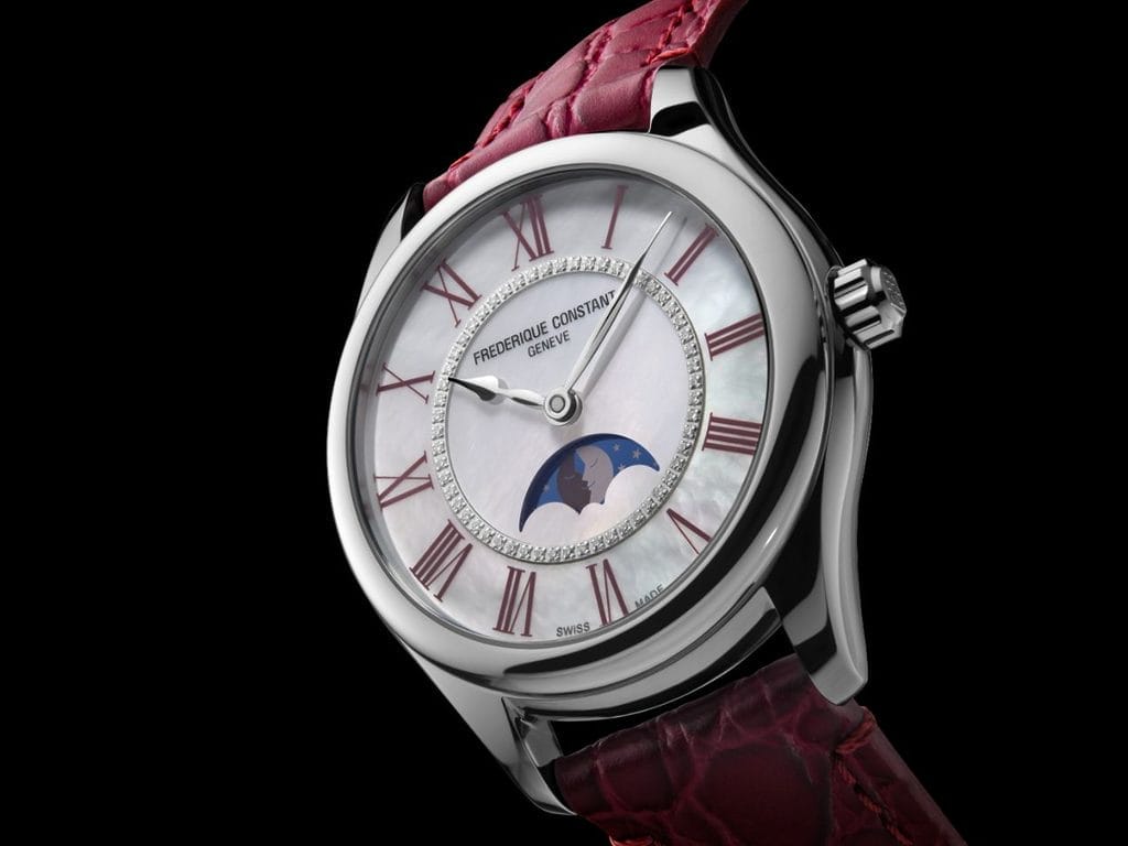 La manufacture horlogère suisse Frederique Constant dévoile une nouvelle montre féminine chic et raffinée au sein de la collection Classics : la Classics Elegance Luna. Sa particularité ? Une phase de lune complice et amoureuse, représentant deux demi-lunes qui s’embrassent, déployée sur un cadran en nacre au sein d’une boîte en acier de 36 mm. Cerclée d’une minuterie en diamants, elle est mise en lumière sur quatre modèles, dont deux ornés d’une lunette sertie de 40 diamants. Animés par un mouvement automatique, ils arborent de nouveaux index en chiffres romains dont la couleur est assortie au bracelet en cuir. A chacune de choisir …