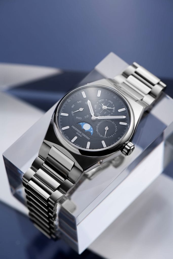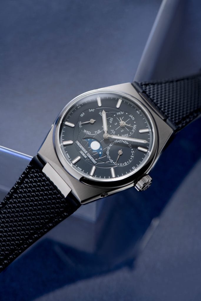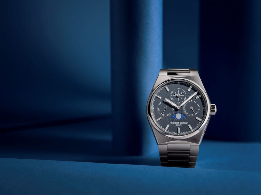 Il y a plus de vingt ans, Frédérique Constant lançait sa collection Highlife, replacée sur le devant de la scène horlogère en 2020. Aujourd’hui, son modèle phare, la Highlife Perpetual Calendar Manufacture, est pour la première fois proposé sur cadran bleu-gris.