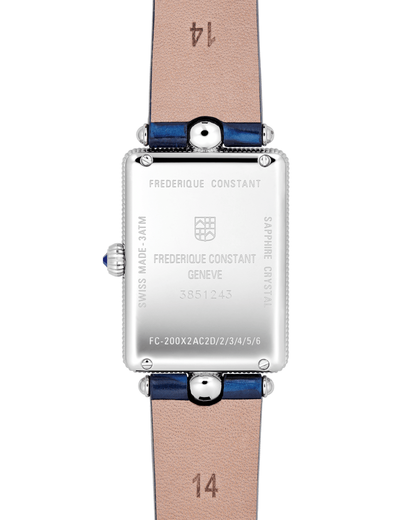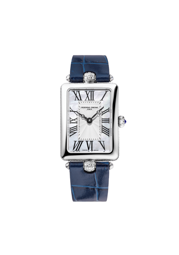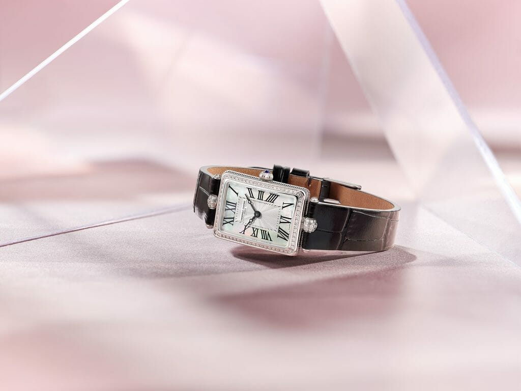 Lancée en 2005 par la manufacture horlogère suisse Frédérique Constant, la ligne Classics Art Déco dévoile, en 2022, une nouvelle silhouette à la géométrie carrée. Sa boîte s’affine pour atteindre de nouvelles proportions plus sveltes et précieuses. Mariant nacre naturelle et diamants, trois nouvelles références voient le jour. Toujours de facture très classique, guillochées et ornées d’un cabochon, ces montres féminines sont dessinées pour le quotidien.