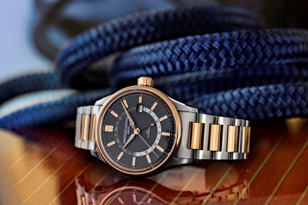 La fonction GMT permet l’affichage d’un second fuseau horaire. Elle est essentielle pour les grands voyageurs souhaitant avoir simultanément l’heure locale et celle de chez eux. Aujourd’hui, le GMT rejoint l’univers chic de la collection Yacht Timer. En dévoilant ce nouveau garde-temps automatique, décliné en deux versions, la manufacture horlogère suisse Frédérique Constant s’adresse aux navigateurs au long cours, aux passionnés de voile, ou tout simplement à ceux séduits par un esthétisme nautique doté d’une complication pratique.