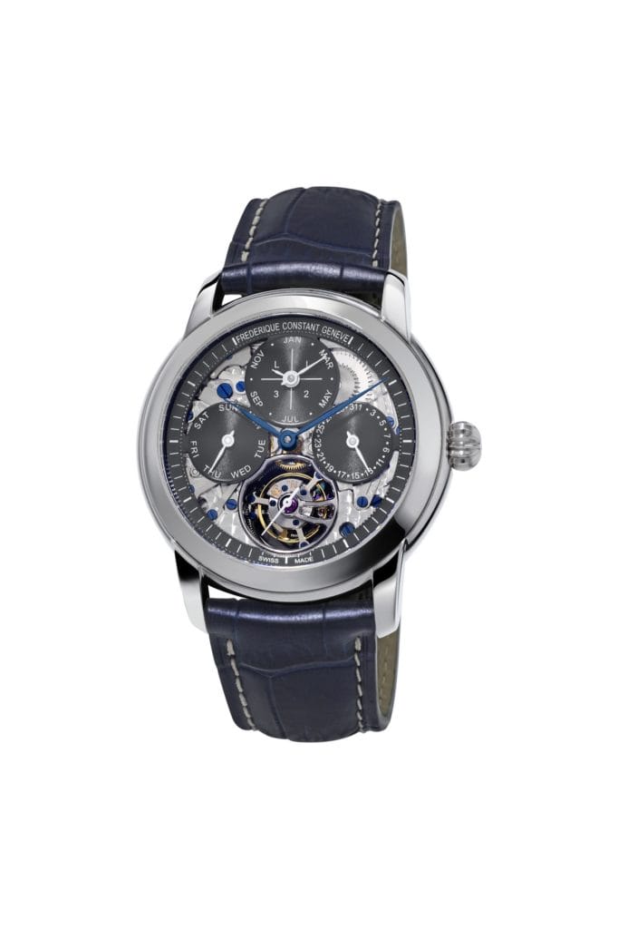 La montre Tourbillon Manufacture Quantième Perpétuel Frédérique Constant est à l’image de l’ambition visionnaire du fondateur de la marque : démocratiser le savoir-faire horloger et l’innovation suisses.