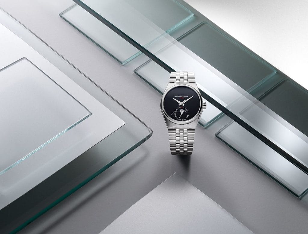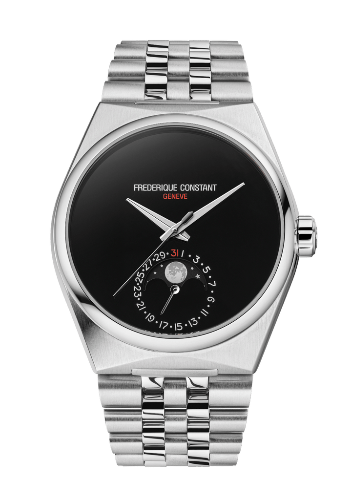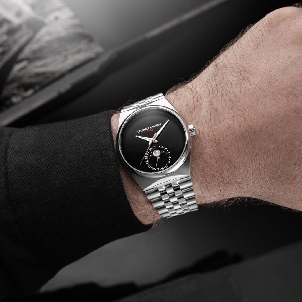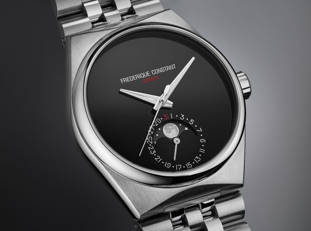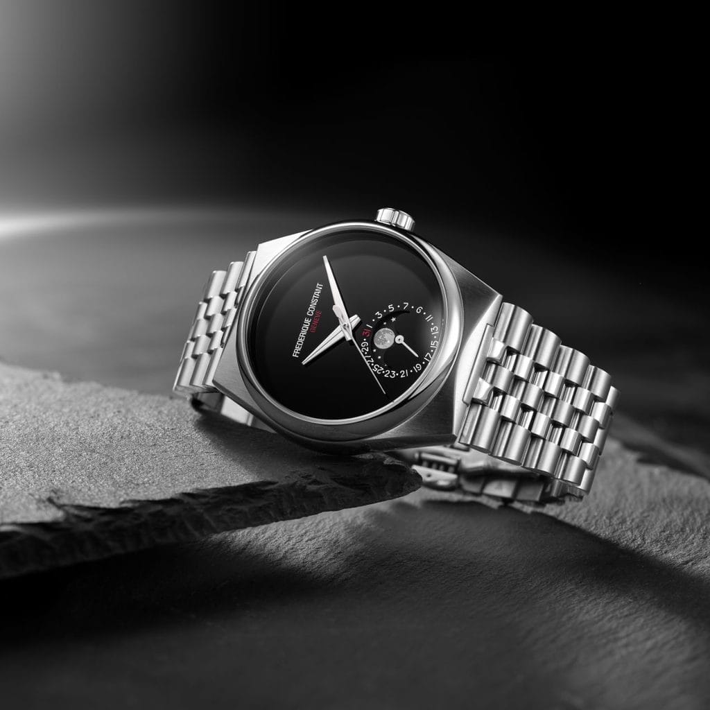 Plusieurs codes de la ligne Highlife auront été revisités. Il s’agira du premier modèle Highlife à intégrer une phase de lune issue de la Manufacture Frederique Constant, de la première Highlife dotée d’un bracelet intégré à cinq maillons, et de la première montre conçue par la Maison sans index sur le cadran.