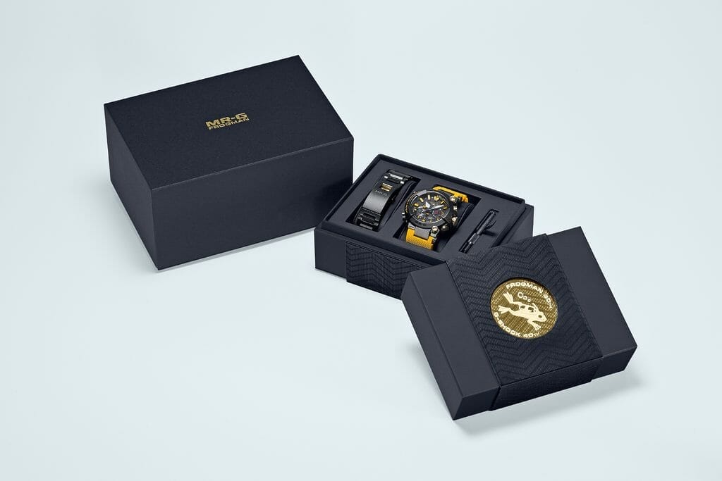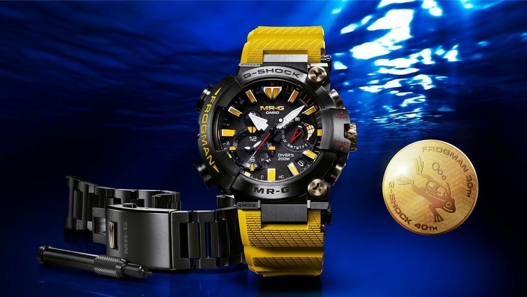 Cette année marque le 40ème anniversaire de G-SHOCK. La ligne de montres de plongée résistantes aux chocs FROGMAN, appréciée pour sa forme asymétrique unique, célèbre également son 30ème anniversaire cette année. Proposée en édition limitée à 700 exemplaires dans le monde entier, cette dernière MR-G FROGMAN, intègre au sein de son set spécial, un bracelet interchangeable en titane et un outil dédié à l’échange des bracelets. Ce packaging présente aussi les logos du 40ème anniversaire de G-SHOCK et du 30ème anniversaire de FROGMAN, ce qui fait de ce garde-temps premium un véritable objet de collection à exposer.