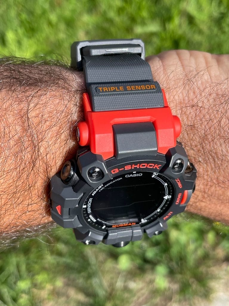 Et au quotidien, cette Mudman GW-9500-1A4, est-elle facile à vivre ? Tout dépend, tout d’abord de votre morphologie. Même si son épaisseur est raisonnable pour une G-SHOCK, sa taille ne passe pas sur tous les poignets ! Tout dépend également si vous en avez l’utilité ou la vie qui va avec. Elle sera bien plus à son aise au poignet d’un bûcheron ou d’un aventurier amazonien qu’à celui d’un cadre de la Défense. Cependant, elle peut être une excellente montre de week-end. Cette montre toujours à l’heure, qui ne craint rien, quelle que soit votre activité, sportive ou manuelle, la montre pour partir en randonnée, pour aller nager (rappelons qu’elle est étanche à 200m, comme toutes les G), couper du bois, accompagner vos enfants aux soldes, tondre, faire du parachutisme, du mono-roue, du roller, ou aller déjeuner en famille. La montre parfaite pour toutes les activités à risques en somme. Parce que c’est pour ça que toutes les G-SHOCK sont conçues. Sans exception !