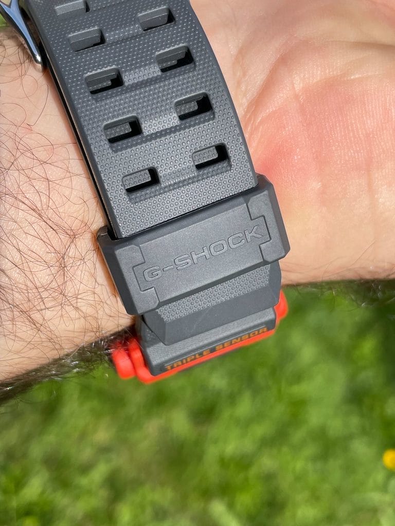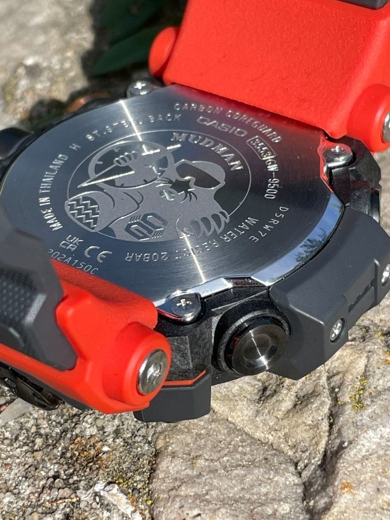 Esthétiquement, tout d’abord, cette nouvelle itération se démarque complètement des ses aînées, et n’est pas sans nous rappeler la Rangeman GPR-B1000, que nous vous avions présenté il y a plus de 4 ans de cela. Heureusement, dans une taille plus contenue, bien que ne passant pas inaperçue, surtout dans cette superbe version orange et grise. Contenue, tout est relatif, puisque notre protagoniste du jour toise quand même 56,7×52,7×14,8mm pour seulement 81 grammes grâce à la structure Carbon Core Guard qui la compose partiellement (du plastique renforcé de fibre de carbone, qui permet d’optimiser la résistance aux chocs tout en conservant une taille et un poids raisonnables). Elle est plus grosse que les versions précédentes, mais moins épaisse. Une tendance très présente sur les derniers modèles de la marque comme les dernières Mudmaster ou Frogman par exemple.