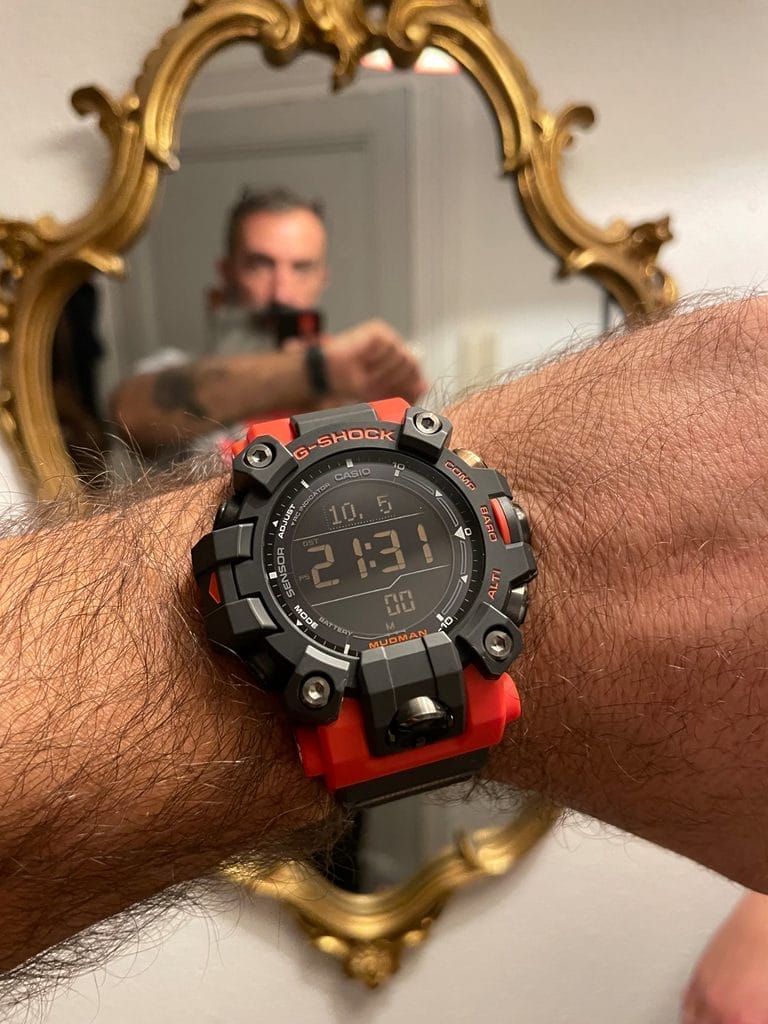 Et au quotidien, cette Mudman GW-9500-1A4, est-elle facile à vivre ? Tout dépend, tout d’abord de votre morphologie. Même si son épaisseur est raisonnable pour une G-SHOCK, sa taille ne passe pas sur tous les poignets ! Tout dépend également si vous en avez l’utilité ou la vie qui va avec. Elle sera bien plus à son aise au poignet d’un bûcheron ou d’un aventurier amazonien qu’à celui d’un cadre de la Défense. Cependant, elle peut être une excellente montre de week-end. Cette montre toujours à l’heure, qui ne craint rien, quelle que soit votre activité, sportive ou manuelle, la montre pour partir en randonnée, pour aller nager (rappelons qu’elle est étanche à 200m, comme toutes les G), couper du bois, accompagner vos enfants aux soldes, tondre, faire du parachutisme, du mono-roue, du roller, ou aller déjeuner en famille. La montre parfaite pour toutes les activités à risques en somme. Parce que c’est pour ça que toutes les G-SHOCK sont conçues. Sans exception !