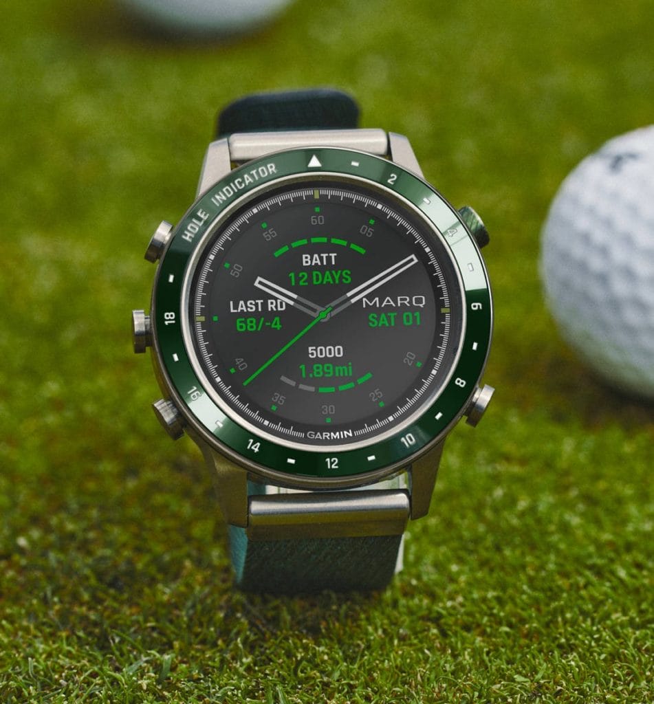 MARQ® Golfer est le modèle luxe de Garmin alliant codes de l’horlogerie et fonctions connectées.