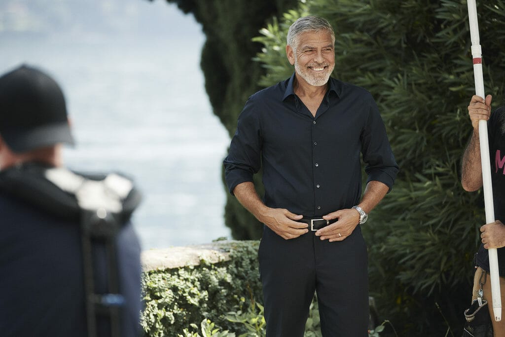 Pour ce shooting, George porte le modèle en acier inoxydable avec un cadran bleu PVD (réf: 332.10.41.51.03.001). Parmi les nouveaux portraits, l’acteur peut être vu portant la montre tout en conduisant une voiture de collection près de sa maison autour du lac de Côme – un clin d’œil aux origines de course de la Speedmaster.