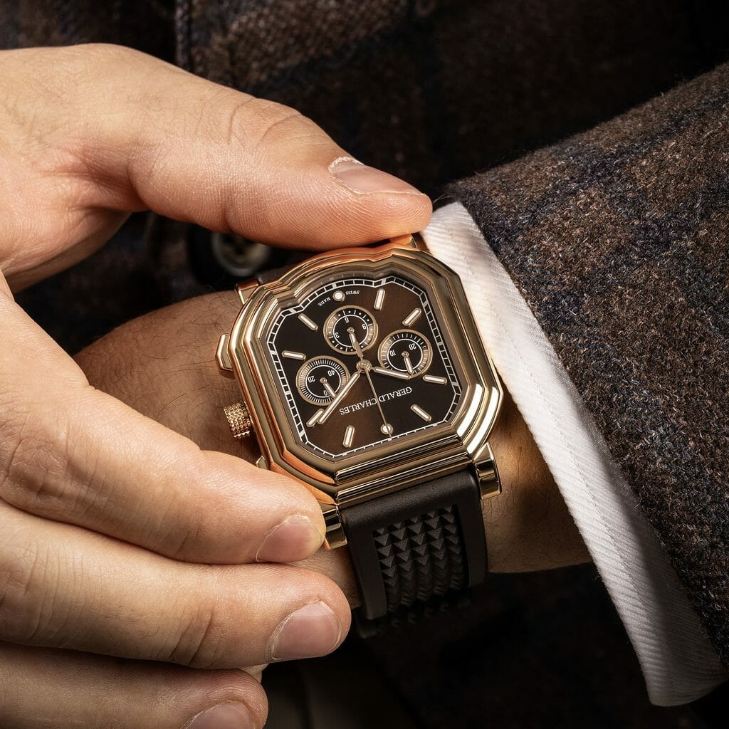La Maison horlogère suisse indépendante Gerald Charles a le plaisir de présenter la Maestro 2.0 Ultra-Thin, Réf. GC2.0-RG-05, et la Maestro 3.0 Chronograph, Ref. GC3.0-RG-05, toutes deux en Or Rose 18K 4N et équipées d’un bracelet en caoutchouc vulcanisé Chocolate Brown.