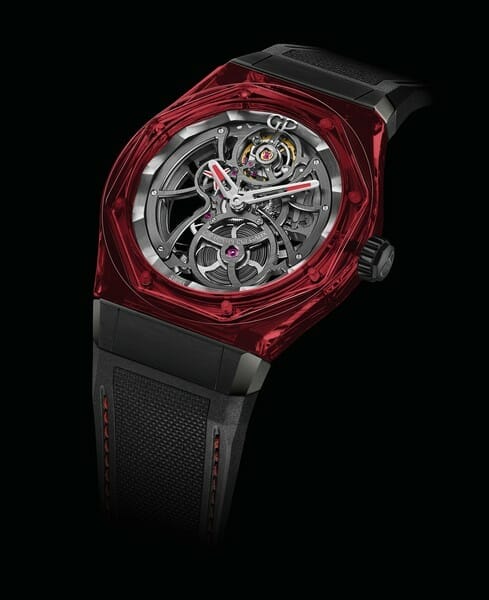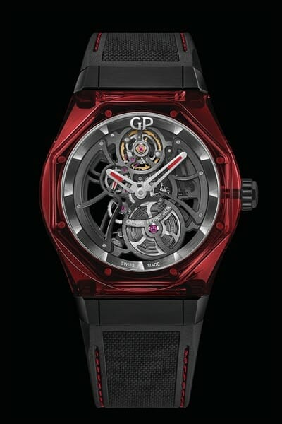 Depuis le lancement de son tout premier modèle en 1975, la Laureato marie les contrastes avec brio afin de créer de superbes effets. Présentée dans un boîtier en verre saphir métallisé, la Laureato Absolute Light & Shade associe les courbes et les lignes, la tradition et la modernité, mais aussi l’esthétique et la fonctionnalité. Pour marquer le Nouvel An chinois, Girard-Perregaux propose également une référence spéciale dotée d’un boîtier rouge translucide. Limitée à 18 exemplaires seulement, la Laureato Absolute Light & Fire sera dévoilée dans le monde entier à l’occasion des célébrations du Nouvel An.
