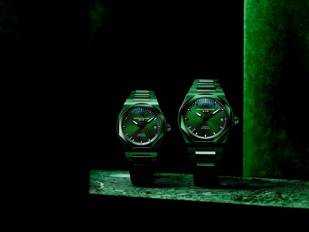 Girard-Perregaux est fière de dévoiler la Laureato Green Ceramic Aston Martin Edition, la première Laureato dotée d’un boîtier et d’un bracelet en céramique verte. Ce modèle est le dernier-né de la collaboration entre la maison suisse et la marque britannique, deux entreprises dont les produits résistent à l’épreuve du temps. Si certains matériaux utilisés pour fabriquer ces nouveaux gardetemps sont ultramodernes, l’essence de la toute première Laureato est toujours bien présente. Déclinée en deux tailles de boîtier (42 et 38 mm), chaque référence est une édition limitée – et est ainsi prédestinée à demeurer un visuel rare.