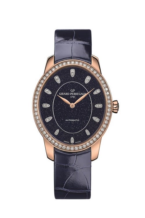 Au-delà de sa fonction contemplative, car nul ne saurait résister à la vision captivante de l’aventurine, la Cat’s Eye Majestic délivre les heures et les minutes grâce à son mouvement mécanique à remontage automatique doté d’une réserve de marche de 46 heures. Le fond saphir de la montre permet d’admirer ce mouvement Maison décoré selon les principes d’exigences chers à Girard-Perregaux, en particulier la masse oscillante en or au motif tapisserie « GP ».