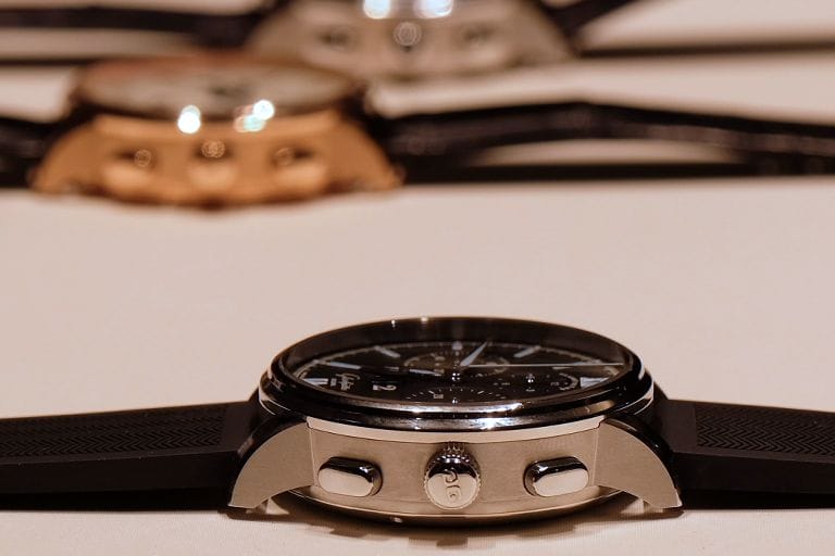 Cette nouvelle version en acier inoxydable bénéficie donc de ce très beau calibre à roue à colonnes mais se veut résolument plus sportive avec des aiguilles glaives et des index couverts de Super-LumiNova bleu, une étanchéité portée à 10 Bars doublée d’une couronne vissée et le choix entre trois bracelets dont un en caoutchouc.