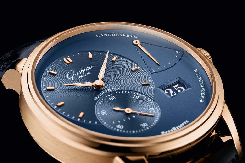 Les cadrans des nouvelles variantes Pano ont été élaborés au sein de la propre manufacture de cadrans de Glashütte Original à Pforzheim. Les détails inimitables et la finition parfaite de ces cadrans requièrent jusqu’à 40 étapes de travail. La couleur bleue saturée est par exemple le résultat d’un procédé de galvanisation rigoureusement contrôlé pour parvenir exactement à la nuance souhaitée. Le cadran est plongé dans un bain à tension constante durant une période précisément définie.
