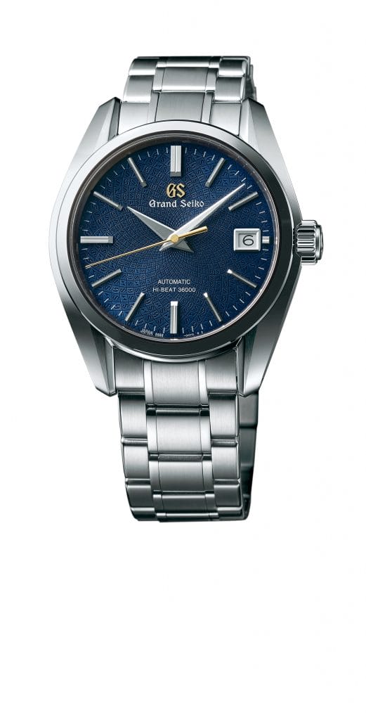Deux surfaces courbes polies Zaratsu se prolongent jusqu’à l’extrémité des cornes, où elles se rencontrent en une très fine ligne pour former un triangle parfait dont seuls les maîtres-artisans Grand Seiko ont le secret. Le cadran est lui aussi exceptionnel. Il intègre le logo utilisé pour les montres fabriquées par l’équipe Daini Seikosha, désormais connue sous le nom de Seiko Instruments Inc.. Cette équipe a développé sa première montre Grand Seiko hi-beat en 1968, il y a 50 ans. Ce logo connu du public alterne les initiales GS, dans une délicate mosaïque qui irradie le cadran depuis son centre en un motif géométrique.