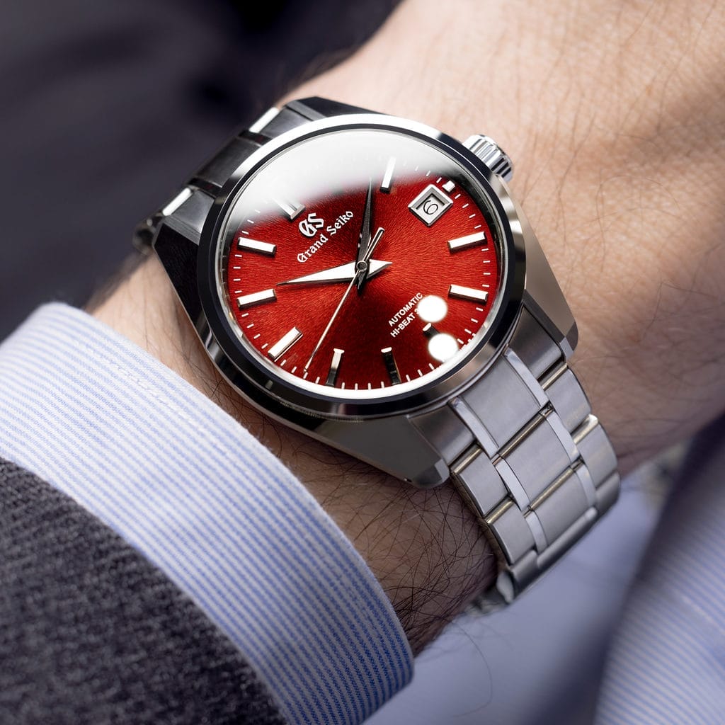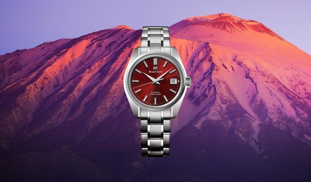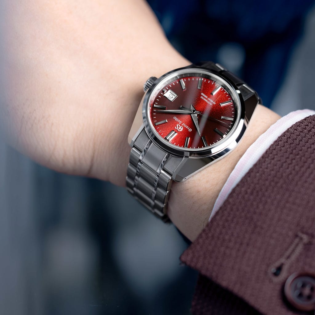 Ce nouveau garde-temps arbore le cadran signature du Grand Seiko Studio Shizukuishi, évoquant les crêtes du Mont Iwate, le sommet qui se dresse fièrement à proximité de la manufacture. Habillée de teintes rouges, cette édition évoque un lever de soleil sur les pentes de la montagne.