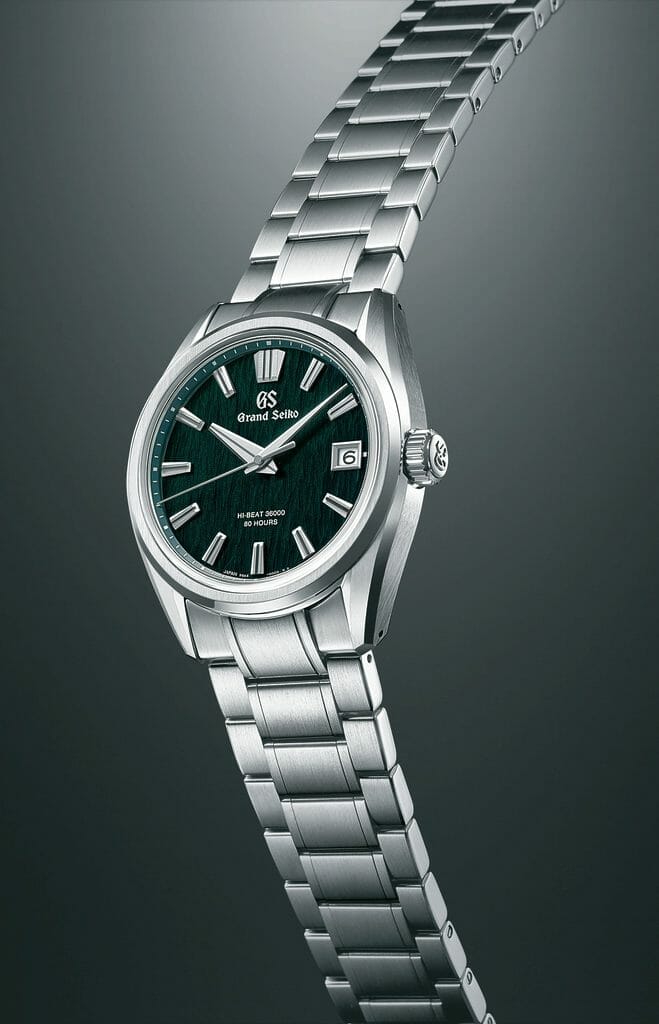 Cette nouveauté Hi-Beat 36 000 alternances surnommée « Green Birch » sous la référence SLGH011, partage le même design Evolution 9 que la multi-primée SLGH005 « White Birch », mais elle propose cette fois un cadran vert qui incarne le dynamisme des forêts de bouleaux blancs lorsqu’elles sont entourées de la verdure estivale qui bordent le studio de Shizukuishi où toutes les montres mécaniques de Grand Seiko sont fabriquées.