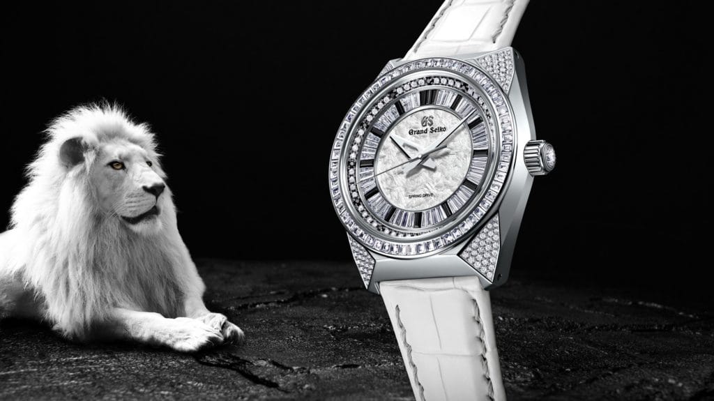 La force et la puissance du lion sont toujours les deux principaux attributs exprimés par cette montre à la beauté aussi rare que saisissante. La combinaison des diamants scintillants, des spinelles noires, de l’or blanc et du platine 950 révèle une montre éblouissante aux exquises finitions. Produite en édition limitée à seulement cinq exemplaires, elle sera disponible à partir de mai 2022 dans certaines boutiques Grand Seiko.