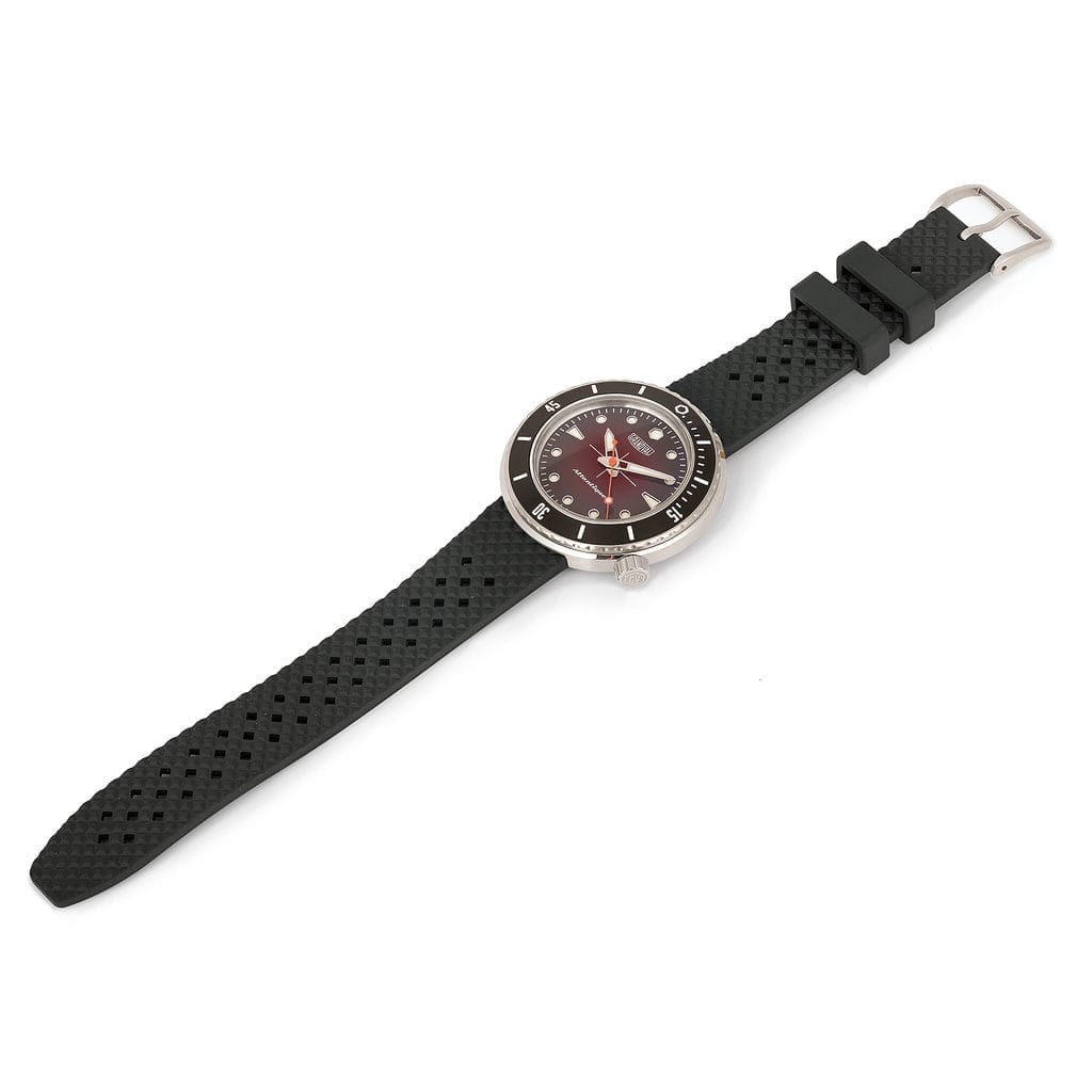 La Atlantique Diver « Volcano Red » est une montre audacieuse et vibrante, fusionnant puissance et élégance. Son cadran dynamique et ses finitions lumineuses captent le regard, évoquant la chaleur et l’énergie d’un volcan en activité.