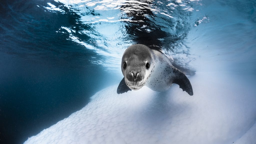 - Le phoque léopard est difficile à étudier dans cet habitat hostile. L’ultime prédateur de cette partie du monde (seul l’orque est au-dessus), il se nourrit de toutes sortes de nourriture il peut trouver dans cette région : des krills aux bébés phoques avec une préférence pour les pingouins. Les documentaires sur la vie des pingouins durant la saison de chasse des phoques léopard met en valeur le lien entre les deux espèces dans la chaîne alimentaire.
