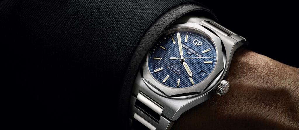 Aujourd’hui j’ai une Girard Perregauex Lauréato. Une montre en acier que je trouve très belle, très intéressante et qui me satisfait totalement. Mais dans huit jours j’en aurai une autre. J’ai la chance de ne pas être obsédé par la propriété des montres. J’aime bien les porter, j’aime bien m’en faire prêter et j’aime bien en changer. Et quand on est ici à Genève, c’est plus facile de se faire prêter des montres que quand on est à Paris. Je suis collectionneur de montres vintages aussi, et de montres militaires.