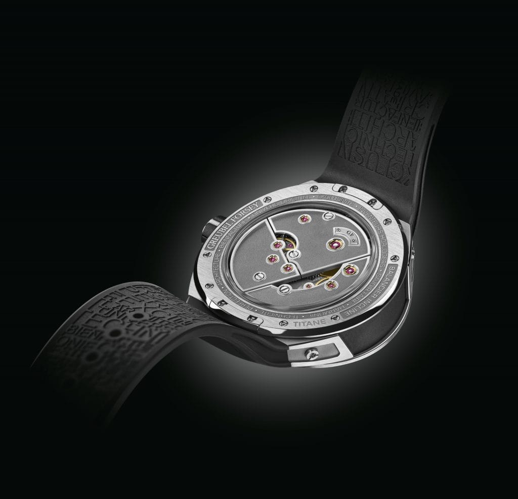 La chronométrie exceptionnelle de la dernière création Greubel Forsey s’allie à un habillage à l’esprit résolument sportif. Fabriqué en titane et étanche à 100 mètres, le boîtier au style puissant se distingue par sa légèreté et son confort au poignet. Sa robustesse permet de protéger le mouvement, notamment son grand balancier, et de préserver ainsi sa fiabilité et sa précision de marche à tout instant.Le bracelet en caoutchouc, souple et résistant, renforce la dimension sportive, avec tout le confort d’une boucle déployante en titane. Avec le «Balancier S », Robert Greubel et Stephen Forsey franchissent un pas de plus dans leur exploration de nouveaux horizons techniques et esthétiques. Rarement un Garde-temps aux caractéristiques sportives n’aura affiché de manière aussi visible une telle performance chronométrique – grâce à la présence du grand balancier incliné battant la mesure sur le cadran ouvert à 7h. Rarement une montre à vocation sportive n’aura présenté un tel degré de bienfacture, au niveau du mouvement comme à celui de l’habillage. Une alliance exclusive entre créativité et performances. Tout l’art de l’invention signé Greubel Forsey.