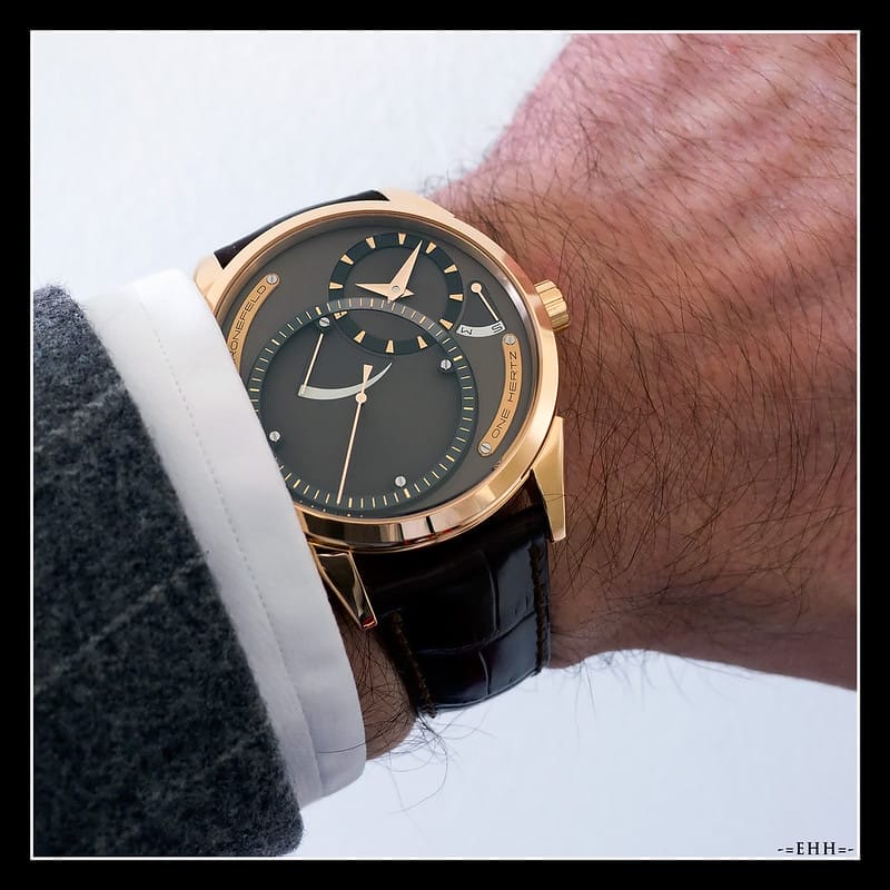 Mais il était dit que leur philosophie serait désormais de développer dans chacune de leurs créations des montres innovantes sur la base de complications originales. C’est dans cet état d’esprit que Tim et Bart ont présenté en 2010 leur nouveau modèle dit « One Hertz » dont le nom reprend symboliquement la complication de « seconde morte » qui en fait la particularité, à savoir une pulsation de la trotteuse par seconde. Rien d’extraordinaire direz-vous puisque les montres à quartz font la même chose !