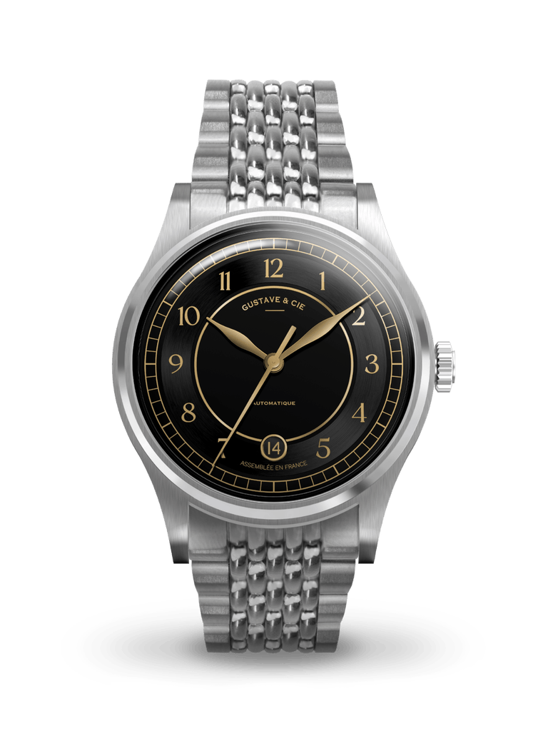 - Le montage final, la pose des bracelets et le contrôle qualité sont réalisés dans les ateliers parisiens de Gustave & Cie avant expédition.