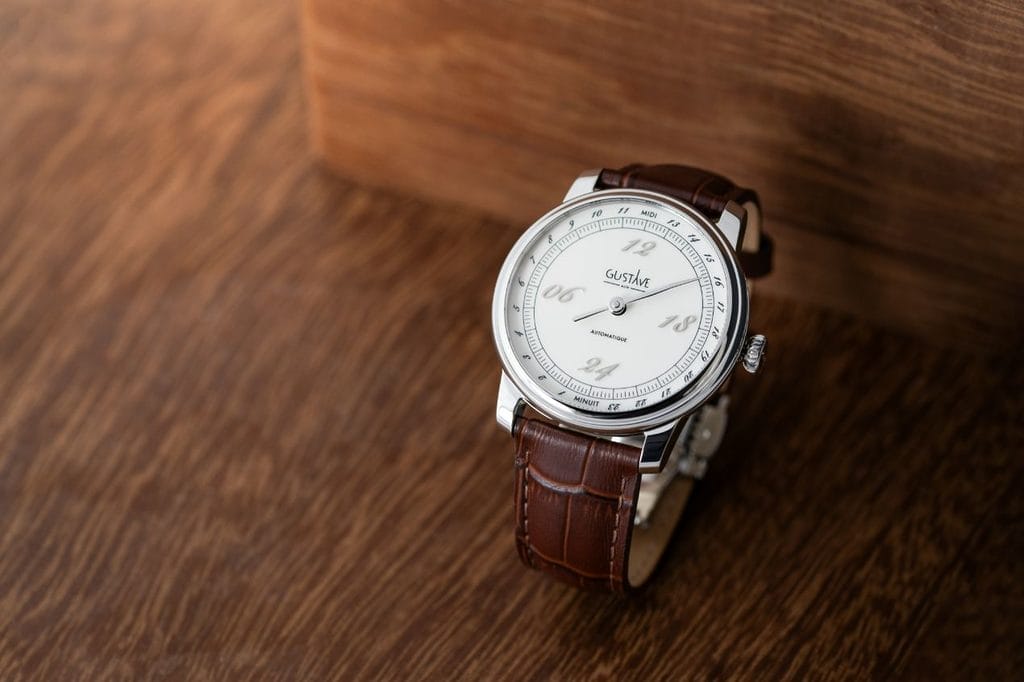 Le cadran 24 heures de la Collection Paul devient alors une toile poétique, évoquant les cycles infinis du jour et de la nuit. Chaque heure est une strophe, chaque minute une virgule. Les mots “MIDI” et “MINUIT”, en toutes lettres, symbolisent les deux repères les plus importants de la journée.