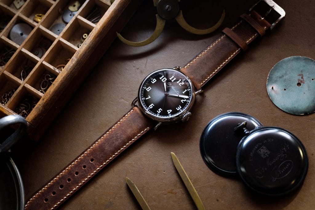 Heritage Bucherer Blue Editions, référence 8200-1200, modèle en acier, cadran fumé, bracelet en cuir de koudou caramel doublé de cuir bleu