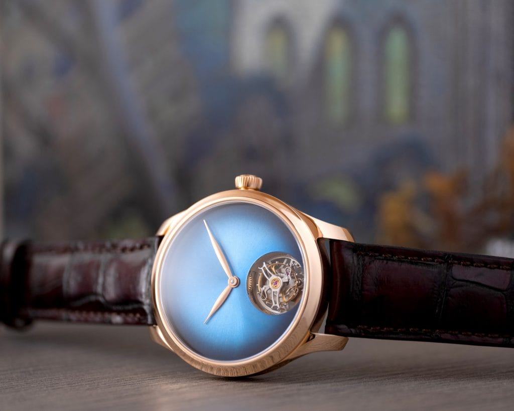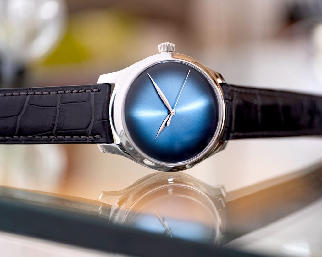 Antithèse des cadrans surchargés et de certaines fonctionnalités inutiles, la Endeavour Centre Seconds Concept s’inscrivait dans une réflexion philosophique et était présentée comme une pièce conceptuelle. Au vu des réactions unanimement positives, H. Moser & Cie. a prouvé qu’il existait un réel besoin de retour aux sources, à l’essence même de l’horlogerie. En mettant en scène son célèbre cadran fumé, signature de la marque, sans aucune fioriture, index ou logo, H. Moser & Cie. a su anticiper la demande et remettre à l’honneur l’artisanat du luxe, la beauté du savoir-faire, souvent éclipsés par le marketing sous-jacent, rappelant que, derrière un logo, il y a avant tout des hommes, horlogers ou cadraniers de talent. Et elle a ainsi démontré qu’un vrai produit de luxe est immédiatement identifiable, même sans logo visible.