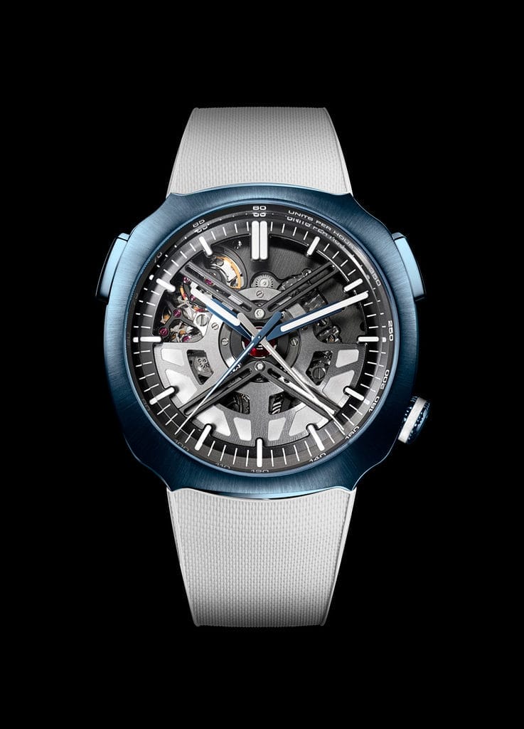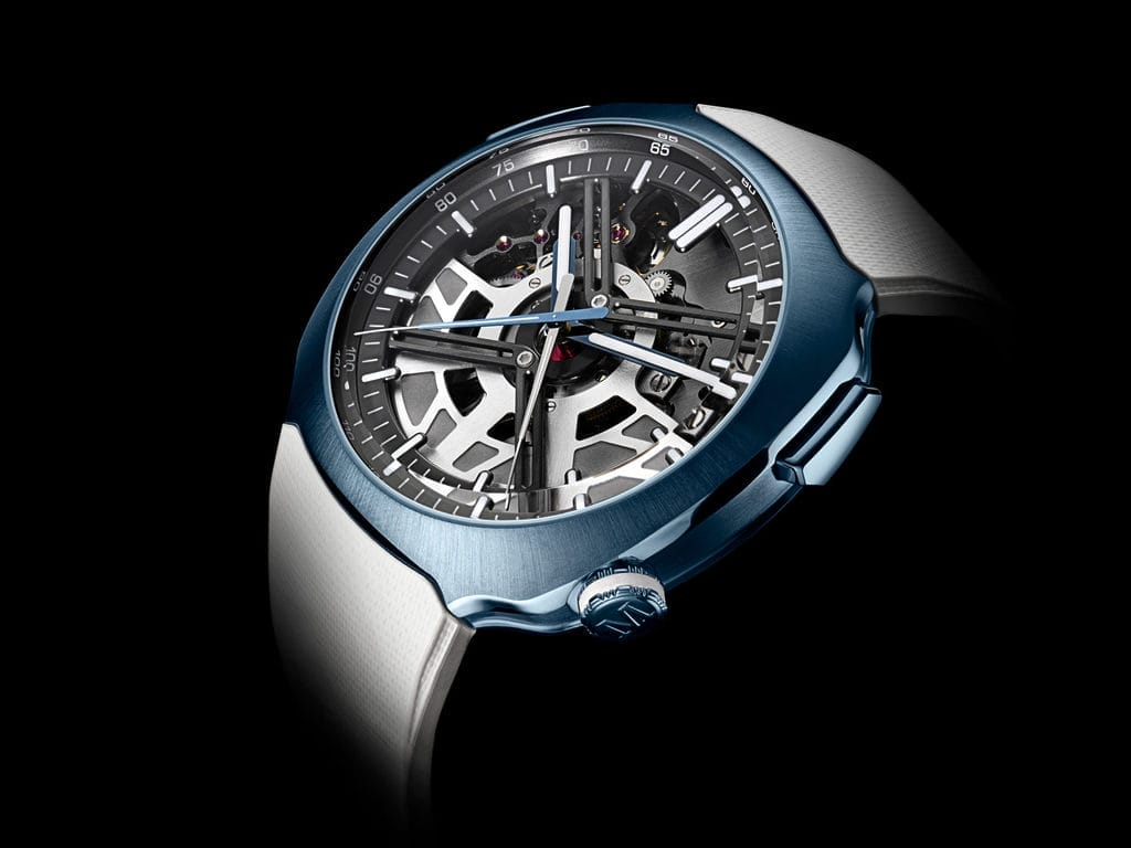 Elles sont proposées ensemble, dans un coffret exclusif produit à 200 exemplaires. Le modèle connecté pourra également être acquis séparément par les propriétaires du Streamliner Cylindrical Tourbillon Skeleton Alpine, décliné en édition bleue ou rose lancée en 2024.