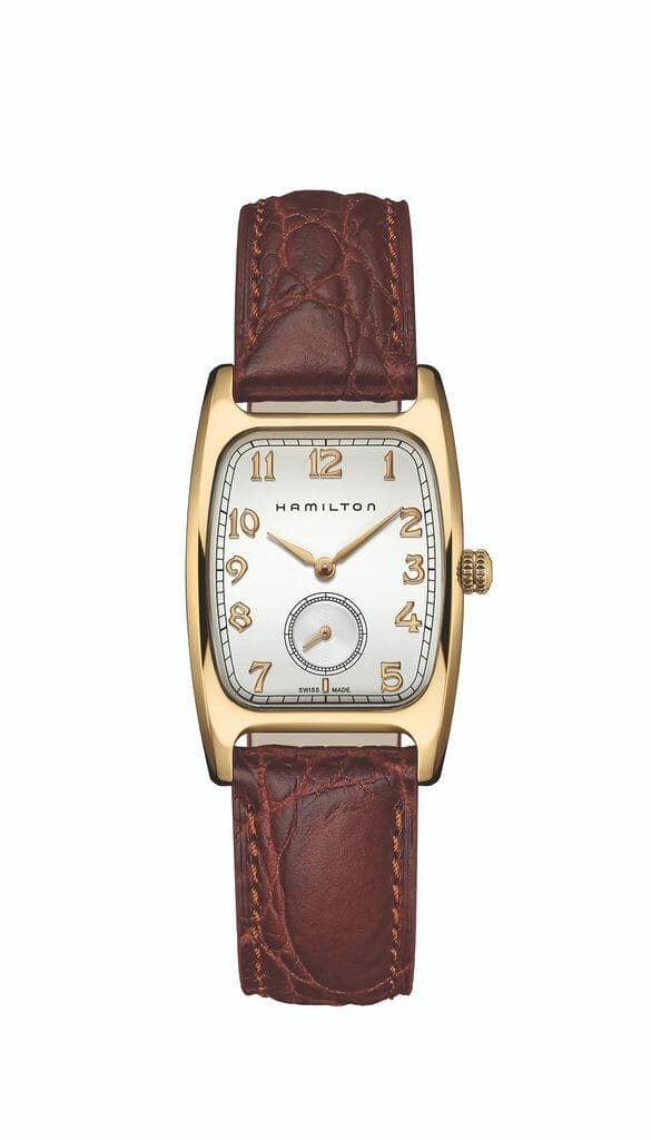 Aujourd’hui, cette montre fait passer l’esthétique art déco dans le XXIe siècle. Dotée d’un cadran blanc avec un petit sous-cadran et des chiffres à l’emblématique police serif, cette montre classique allie l’héritage de longue date d’Hamilton à la précision horlogère suisse, et mérite largement sa place au grand écran.